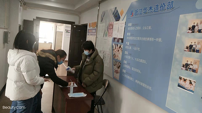 12月13日(星期一)早上八点,经过了一个周末,造价部员工刚走到10楼公司大门口,就被行政部的庄嘉莉拦住了,要求测温、亮码,检查一切正常并作好相应登记后,方可进入了办公区。