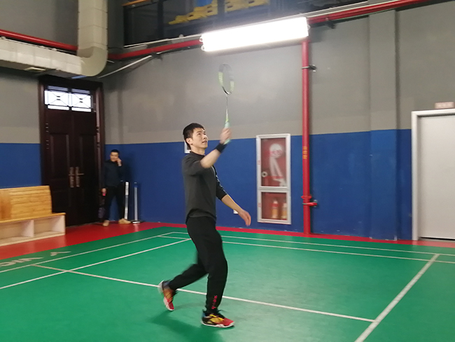 最值得一提的是我们年轻的人称“周教练”的造价部同事周盛吉,他不仅造价专业知识优秀,而且羽毛球技术也不含糊。边打边教,时不时的给同事们耐心细致的动作指导和战术指导,还为我们这些小白缠绕羽毛球拍手胶,俨然是个真正的“周教练”。