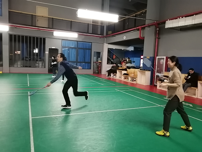 “飞行,你也上场试试哇。”这是财务部裘姐热情爽朗地招呼声,只见她一身专业装备,笑盈盈地往场地走来,她身后是同样装备齐全的陆姐,看着都充满了朝气。我说我先看看,适应一下气氛。她俩和胡迪嘉、赵海林组成了男女混合双打,就这样中年组合也在场上洋溢着青春,奔放着热情。展示了她们与工作中截然不同的一面,个个都笑容满面,开心快乐!