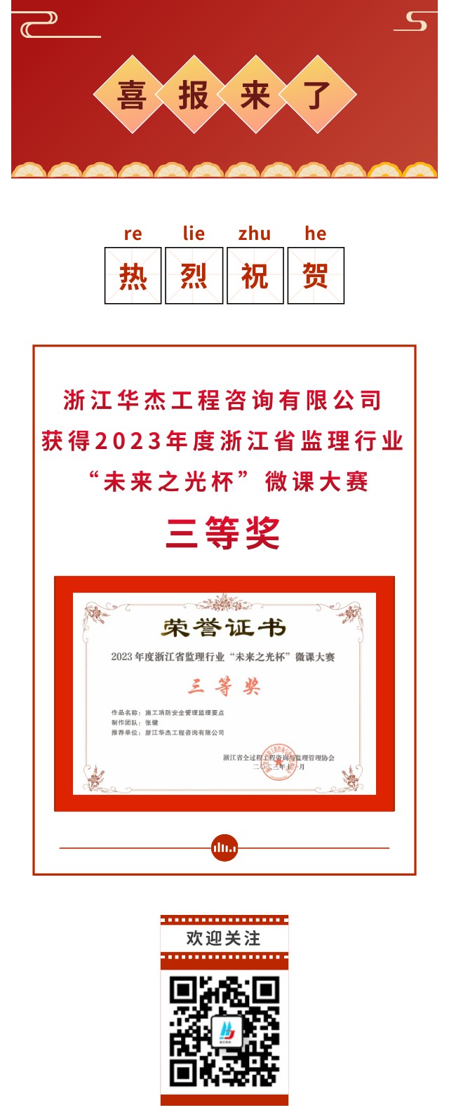 热烈祝贺浙江华杰工程咨询有限公司获得2023年度浙江省监理行业“未来之光杯”微课大赛三等奖